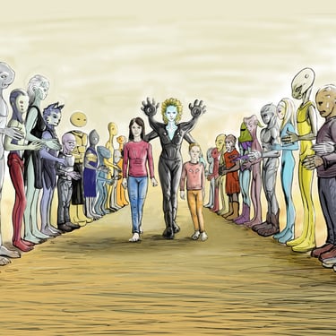 Welcome—truly welcome—to this digital space of images and quiet intention. I have made it for you, because no creation fully exists until it is seen, and it is the audience who completes the work. Art does not simply occupy space; it shifts how we perceive it. It heightens feeling, sharpens attention, and gently rearranges the way the world settles in the mind. A line leads the eye almost without asking. Colour adjusts the emotional temperature of a moment. Rhythm—through repetition, pause, and sequence—creates expectation. Even simple drawings can lower stress, lift the mood, or offer a subtle sense of companionship. Illustration and comic art, in particular, combine image, timing, and suggestion, engaging emotion and imagination at the same time. Comic art is especially powerful because it invites participation. Meaning does not sit fully formed on the page; it emerges in the spaces between panels. The reader animates still images, supplies movement, fills gaps with memory and empathy. This quiet collaboration stimulates creativity and flexible thinking. Humor, exaggeration, and stylisation—central tools of comics—also soften difficult ideas, allowing them to be approached playfully rather than resisted. Comics make room for curiosity, lightness, and emotional resilience.